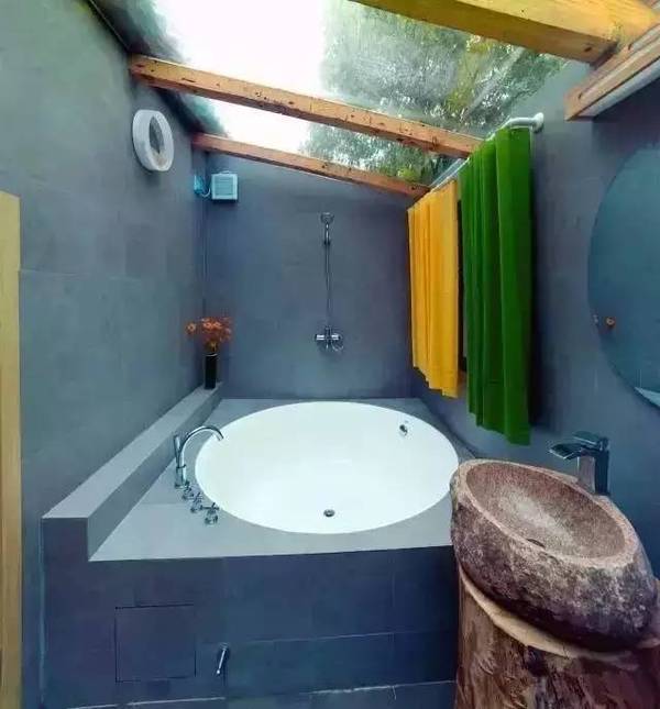 玻璃罩頂的“露天”浴房,
